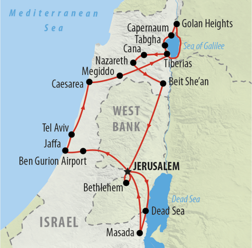 Visit Israel Museum (artifacts, Dead Sea Scrolls, model of Biblical Jerusalem). Visit House of Caiaphas (beating, pit, hillside steps). Conditions permitting, visit Temple Mount). Visit City of David (Gihon Springs, excavations, Israelite house, lower city wall, Pool of Siloam (Jesus' miracle in John 9).